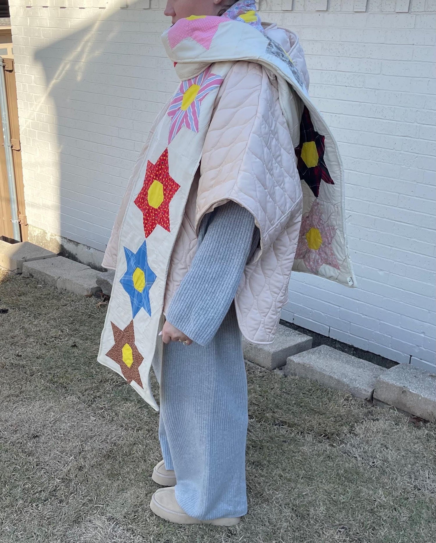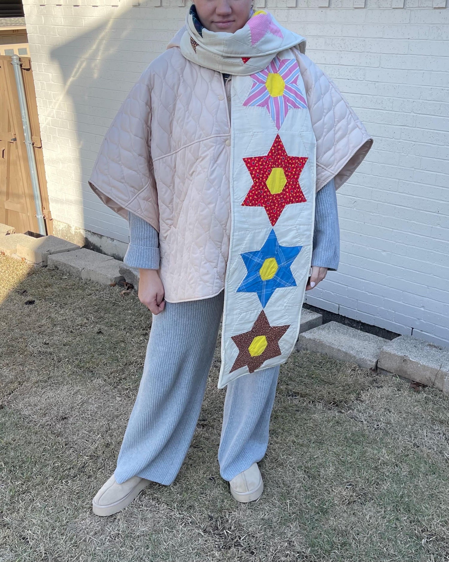 Upcycled scarf made from a vintage quilt most likely between 1970-1990.