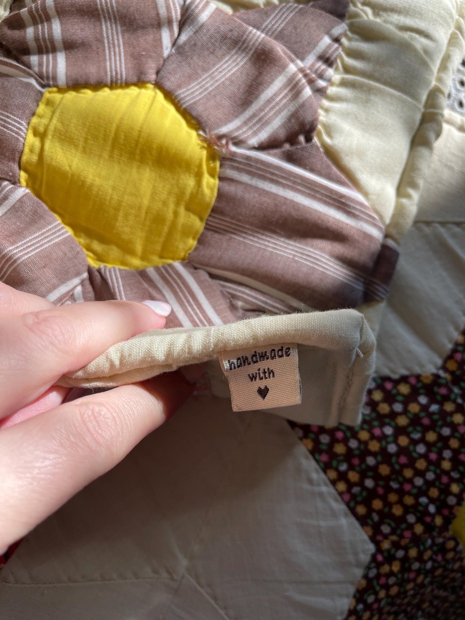 Quilt has some wear and imperfections but any major tears have been hand sewn.